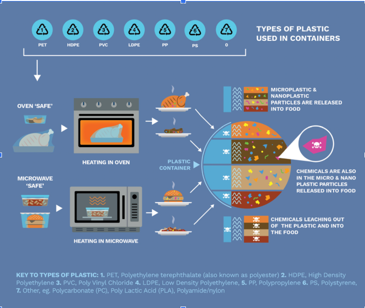 Heating food in plastic packaging dramatically increases the levels of microplastics and chemicals that leach into our food.
